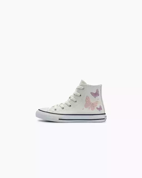 O clássico Chuck Taylor All Star na versão kids é confeccionado em tecido canvas de algodão tipo lona e chega na coleção Festival Style com borboletas bordadas e estampadas por todo cabedal, tornando o visual único e divertido. Possui costuras dupla, uma tira de tecido no calcanhar que proporciona maior suporte ao tênis, forro interno acolchoado para maior conforto e dois ilhoses laterais para uma transpiração adequada aos pés. O Patch Logo com assinatura Converse Chuck Taylor All Star é aplicado na parte interna dos canos, com detalhe de pequena borboleta, enquanto o logo Converse All Star é aplicado na heeltab do calcanhar. O solado vulcanizado garante a aderência adequada ao caminhar.