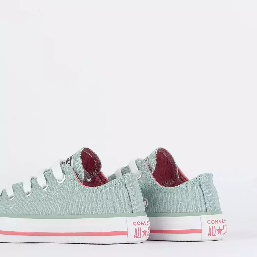 O clássico Chuck Taylor All Star em sua versão kids é confeccionado em tecido canvas de algodão tipo lona, possui costuras duplas, ilhoses na cor prateada, uma tira de tecido no calcanhar que proporciona maior suporte ao tênis, forro interno acolchoado para maior conforto e dois ilhoses laterais para uma transpiração adequada aos pés. O logo Converse All Star é aplicado na heeltab do calcanhar. O solado vulcanizado garante a aderência adequada ao caminha